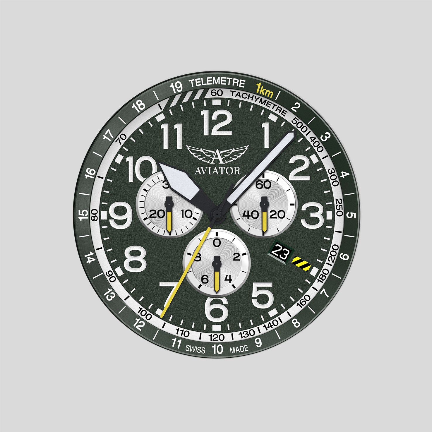 Ciferník, který evokuje ducha kokpitu, je navržen s matně zrnitou texturou, která těmto hodinkám dodává instrumentálnější pocit. Jeho minimalistické, vysoce kontrastní ručičky a číslice poskytují vynikající jasnost a čitelnost, zatímco nadrozměrné okénko kalendáře v pozici čtvrté hodiny zvyšuje jeho jedinečný design. každý detail je promyšlen tak, aby spojoval autentičnost se vzhledem inspirovaným letectvím.
